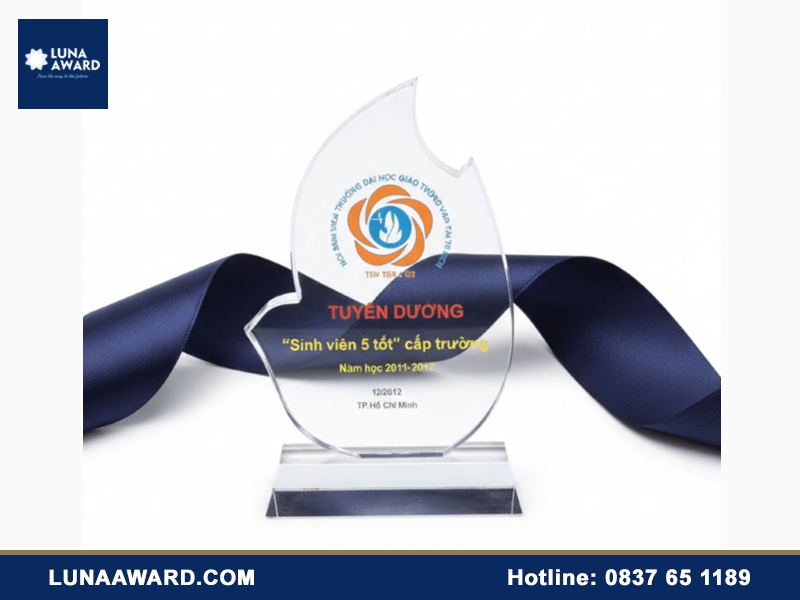 Cup vinh danh, kỷ niệm chương Mica (Acrylic) là chất liệu hiện đại với ưu điểm nhẹ, khó vỡ và cực kỳ dễ tạo hình theo yêu cầu riêng (custom shape).