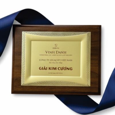 Sản phẩm được chế tác với kích thước tiêu chuẩn 230x310mm, phù hợp để trưng bày tại văn phòng, phòng họp, sảnh lễ tân hay không gian vinh danh của doanh nghiệp. Thiết kế trang nhã với tỷ lệ cân đối, khung viền gỗ chắc chắn ôm trọn tấm đồng bóng bẩy ở giữa, tạo nên một tổng thể hài hòa và mang đậm dấu ấn của sự thành công.