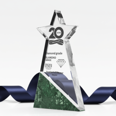 Vẻ đẹp của sản phẩm không chỉ nằm ở hình dáng mà còn ở ý nghĩa tượng trưng sâu sắc. Ngôi sao pha lê trong suốt tượng trưng cho sự sáng suốt, kiên định và nỗ lực không ngừng để vươn đến đỉnh cao thành công. Chính vì vậy, Cúp Pha Lê Ngôi Sao luôn là lựa chọn hàng đầu cho các sự kiện vinh danh lớn, nơi mỗi người được tôn vinh đều là “ngôi sao” thực thụ trong lĩnh vực của họ.