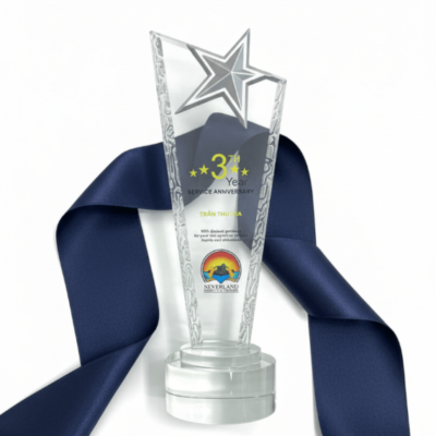 Vẻ đẹp của sản phẩm không chỉ nằm ở hình dáng mà còn ở ý nghĩa tượng trưng sâu sắc. Ngôi sao pha lê trong suốt tượng trưng cho sự sáng suốt, kiên định và nỗ lực không ngừng để vươn đến đỉnh cao thành công. Chính vì vậy, Cúp Pha Lê Ngôi Sao luôn là lựa chọn hàng đầu cho các sự kiện vinh danh lớn, nơi mỗi người được tôn vinh đều là “ngôi sao” thực thụ trong lĩnh vực của họ.
